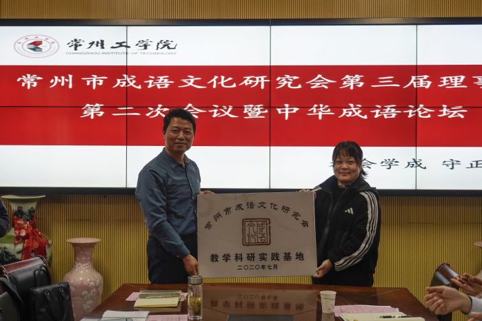 肖华首先介绍了常州市成语文化研究会换届大会以来的工作、经费使用情况以及明年工作的基本思路。就研究会今后的工作希望各位理事、会员积极守正创新,建言献策,群策群力,有所作为。之后,名誉会莫彭龄教授以及与会代表都提出了一些建设性的意见建议。肖华向威雅公学、半山书局两家单位授予常州市成语文化研究会教育研究实践基地。