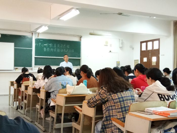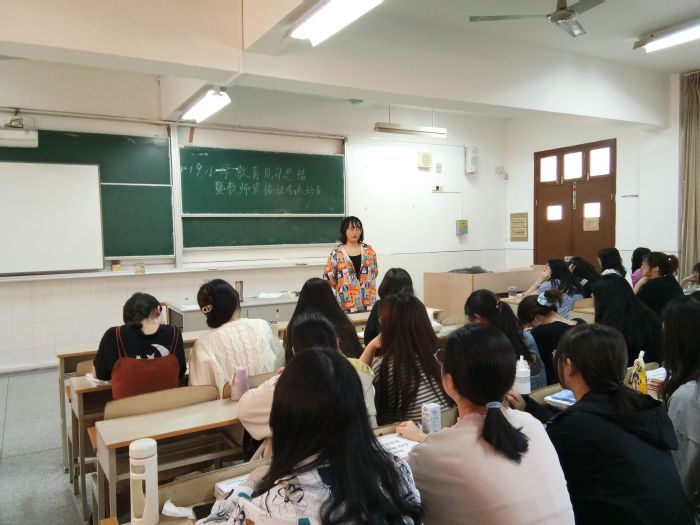 第二环节是教团队格考试动员会。19级同学下半年即将报名参加教团队格考试,为了给同学们提供复习帮助和最新的考试资讯,从5月份开始,专业内面向19级同学的教团队格考试辅导活动即将开展。谢老师、王老师就考试涉及到的知识内容、技能要求向同学们作了简单介绍,并对接下来的师范生“三字一话”、作文写作、教案设计等常规技能训练活动进行了布置。相信在专业教师的辅导和同学们的共同努力下,19级同学能够更好地开展复习,迎接教团队格大考。