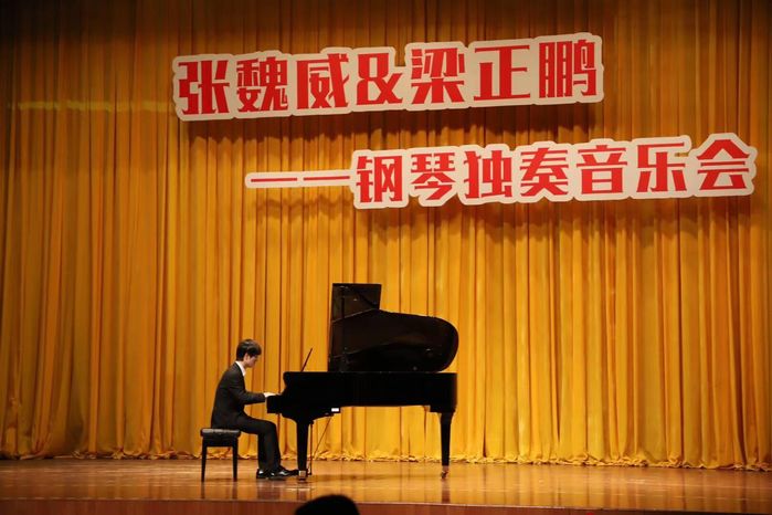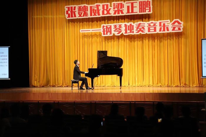 音乐会紧扣时代脉搏,首先出场的张魏威以一系列中国经典钢琴作品献礼“党的生日”。他演奏了《远方的香格里拉》《音诗》《浏阳河》《彩云追月》和《我的祖国》等大家耳熟能详、脍炙人口的钢琴作品。在演奏过程中,他细腻的触键方式、丰富的情感变化以及巧妙的音色处理赢得台下观众们的阵阵掌声。下半场,梁正鹏演奏了德国古典主义时期作曲家贝多芬3首钢琴奏鸣曲,作品气势恢宏,蕴含深刻的哲理,体现出作曲家朝气蓬勃、充满自信和勇往直前的英雄主义气概。梁正鹏依靠扎实的基本功将作品中和声及曲式结构的复杂变化做了很好的诠释。