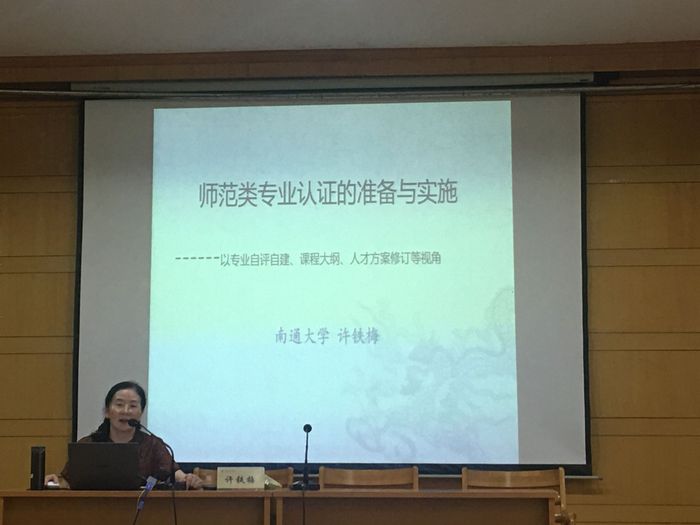会上,许铁梅教授作了《师范类专业认证的准备与实施》的专题指导报告,围绕专业自评自建、课程大纲、人才方案修订等诸多视角详细介绍了专业认证工作的具体做法与成功经验。她重点针对专业认证过程的设计与分工、申请前期的准备事宜、对本专业特色的挖掘、专家进校考察注意事项等方面进行了深入浅出的阐述。会后,许教授对学院老师提出的问题做了解答,并提出了工作建议。