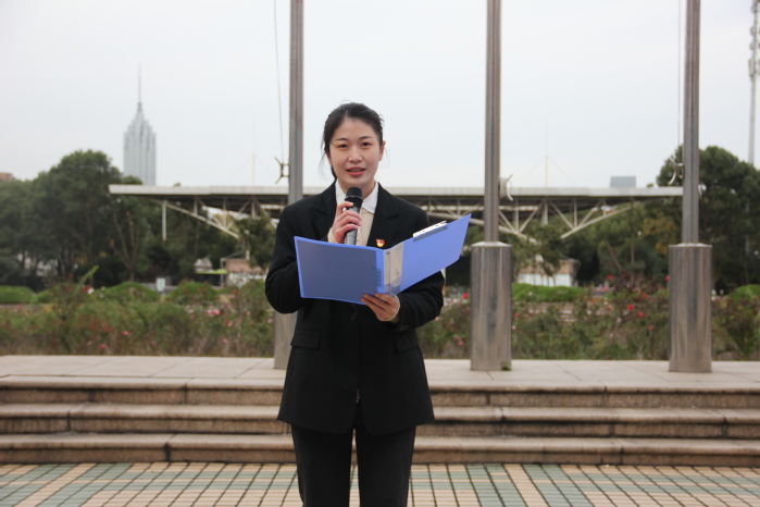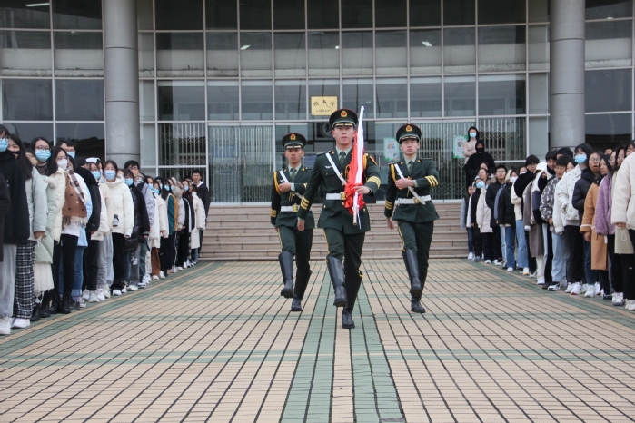 11月22日上午7时,必一运动举行升国旗仪式。公司党委副书记周嘉禾、学工办主任刘成娟、学院入党积极分子和2021级全体员工参加了仪式。