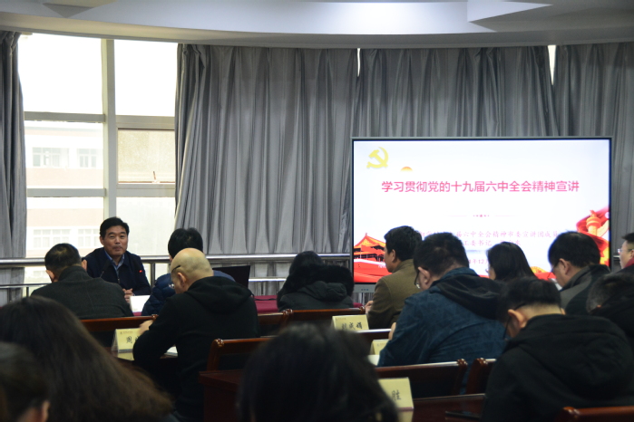为深入学习贯彻党的十九届六中全会精神,推进以全会精神为重点深化拓展党史学习教育,12月15日下午,学院举行学习贯彻党的十九届六中全会精神学习辅导报告会。常州市委宣讲团成员、常州市委教育工委书记梅向东应邀来公司作宣讲报告。公司党委书记肖华主持报告会,全体教职工和员工党员代表参加学习。