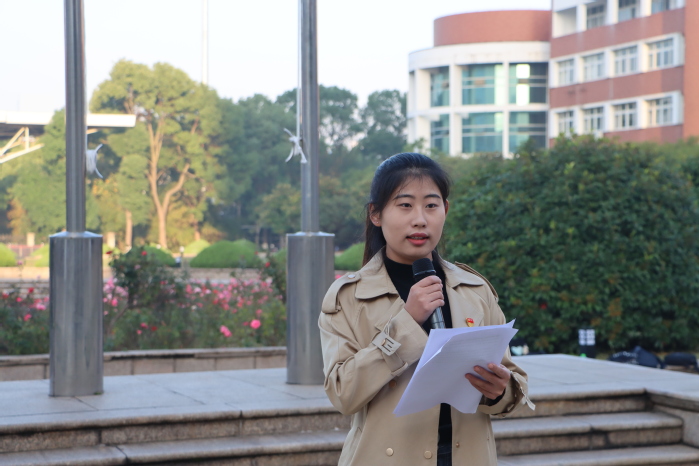 国歌奏响,五星红旗冉冉升起,全场师生肃立,行注目礼,高唱国歌。随后,19小教三班张晓雨同学为大家作题为《心之所向力行求至》的国旗下讲话,她分享了三年多来自己的成长历程,希望同学们能从她的经历中汲取经验,从现在做起,把握好大学时光,为自己的未来夯实基础。