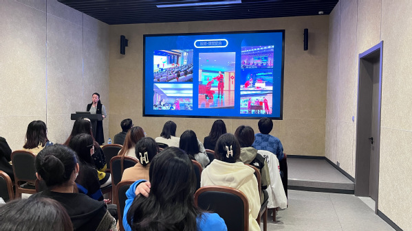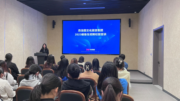 首先,防灾馆讲解员带领师生们参观了防灾避险体验馆,并现场亲身体验了地震、公交倾倒、地铁火灾等的虚拟现场,大大丰富了员工对于防灾避险的知识储备。随后,董小锋从恐龙园集团发展历程的短片开始,介绍了恐龙园研学素培事业部的主要功能和核心工作;党梦婷就集团2023储备生招聘的相关机制和条件进行了宣讲;新入职员工白俊铭给参会师生介绍了他的求职经历和工作心得。三位的热情分享让员工们受益颇丰,不仅全面了解了恐龙园研学素培中心的工作内容与发展晋升空间,拓宽了对于毕业求职的认知倍感,也深深感受到了恐龙园文旅集团家文化的亲切。最后,学前教育系主任杨晓岚对恐龙园文旅集团的热情接待表示感谢,也鼓励大四毕业生们结合当下发展形势和自身优势特点,尽早明确就业方向、扩展就业选择范围、抓住良好就业机遇,为明年的顺利毕业和就业做好准备。