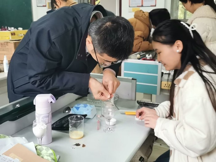 30日上午,冯凯老师以《小学科学常见实验教学与设计》为题,介绍科学教学设计的具体内容,以在哪里、怎么说、怎么做、怎么设计为重点,指导员工如何做好小学科学教师。随后,冯老师带领同学们动手实践,做了《提起洋葱DNA》、《提取面粉里的蛋白质》和《使蛋白质失去活性》三组科学实验。