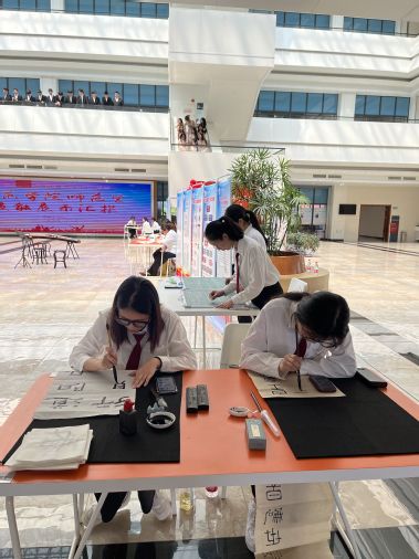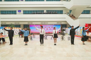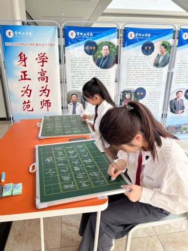 此次活动充分利用辽河路图书馆环境特点,以廊道、阶梯、展板区和明湖小广场构成具有强烈向心性的围合而开放的立体空间,采用沉浸动态呈现形式进行合唱、诗朗诵、民乐合奏、项目路演、舞蹈、手工制作和书法绘画等师范生技能展示。“努力奉献给成长,我拿什么奉献给你,我的期望”,一曲《奉献》拉开了活动序幕;情境诗朗诵《百年师范百年芳华》再现了常州师范教育的峥嵘历程,彰显了传承万世师表重任的雄心与激情;民乐合奏《茉莉花》深情动听,精彩演绎出东方韵味;“百名师范生讲百年党史”项目路演体现了师范专业创新实践特色;“让我们的笑容,充满着青春的骄傲,让我们期待明天会更好”,结束曲集体合唱《明天会更好》道出了百年师范一代代师生奉献青春、传承师魂的精神,表达了学院师生对学校美好未来的期待和祝福。