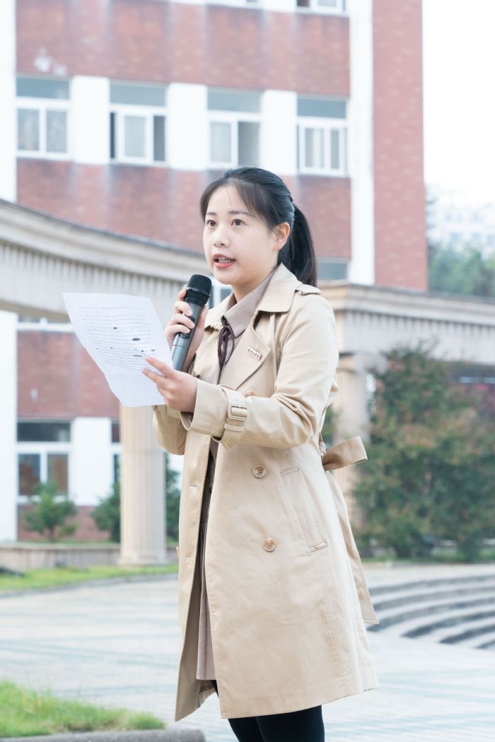 国歌奏响,五星红旗冉冉升起,全场师生肃立,行注目礼,高唱国歌。随后,开展了以《身边榜样前行力量》为主题的身边榜样力量宣讲活动。2023年国家奖学金获得者21小教四班团支书杨雨欣同学为大家作题为《满怀希望,乘风破浪》的演讲,她分享了两年多来自己的成长历程,她表示只有不断的突破自我,才会有更持久的发展生命力和可持续发展的可能,勉励同学们作为新时代师范生一起勇担时代责任,厚植家国情怀,刻苦学习,砥砺品格,不断增长传道授业解惑本领,让青春绽放在祖国和人民最需要的地方。满怀希望,乘风破浪,愿你我在大有可为的时代背景下,皆能成为有为之人!