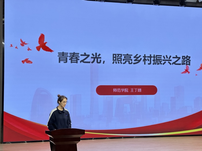最后,优秀员工干部代表进行了主题信仰公开课分享。董贝贝以“以劳模精神为笔,绘就职业青春画卷”为题,通过基层教师扎根岗位的成长故事,呼吁同学们主动突破舒适圈,在实干中提升综合能力。王丁翊则以“青春之光,照亮乡村振兴之路”为切入点,结合国家全面推进乡村振兴的重大战略部署,提出师范生应充分发挥专业优势,积极投身乡村教育振兴。两场团课分享以生动的语言和鲜活的案例,为同学们注入了鲜活的奋斗动力。