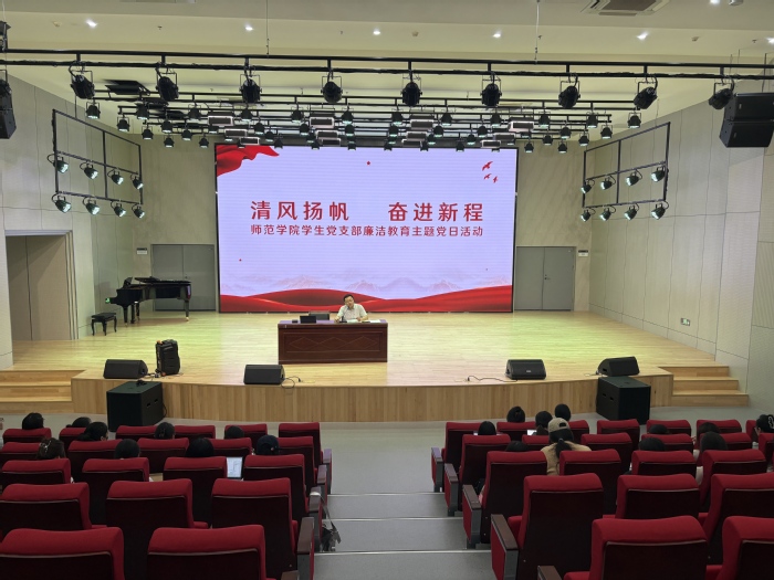 王同灿带领大家学习《锲而不舍落实中央八项规定精神,以优良党风引领社风民风》,强调全体党员要深刻领会中央八项规定精神实质,保持党的优良传统和作风,做到廉洁自律,以实际行动践行党的宗旨。赵文作《永葆廉洁心,走好人生路》的主题发言,她指出广大青年要争做有理想、敢担当、能吃苦、肯奋斗的新时代好青年。接着,詹奕霏作为毕业生党员代表发言,她分享了自己在学习和生活中如何坚守廉洁自律的体会,表示将把廉洁精神带入未来的工作和生活中。
